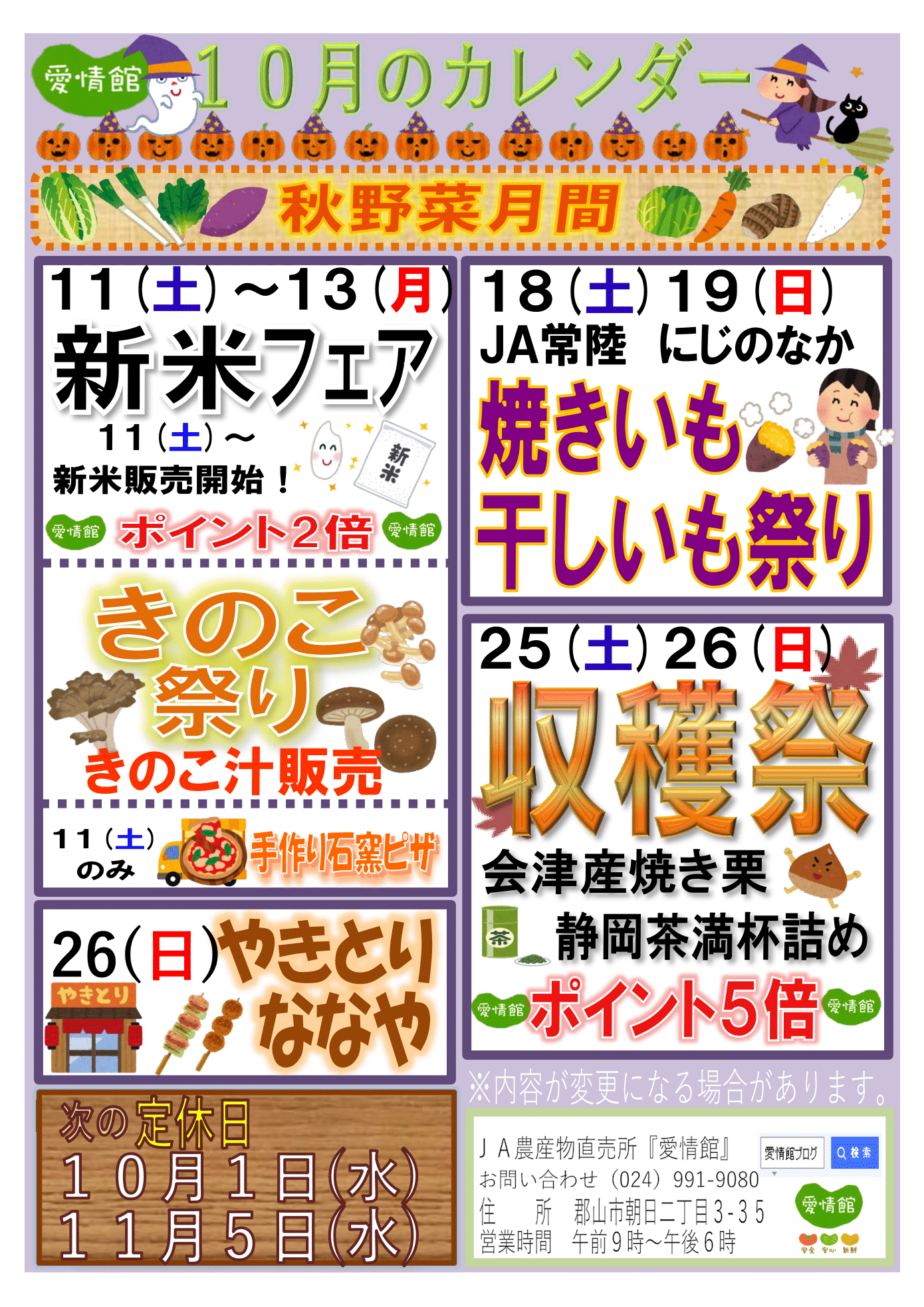 新米の季節となりました!当日は新米の試食も実施するので、是非愛情館へ行ってみて♪