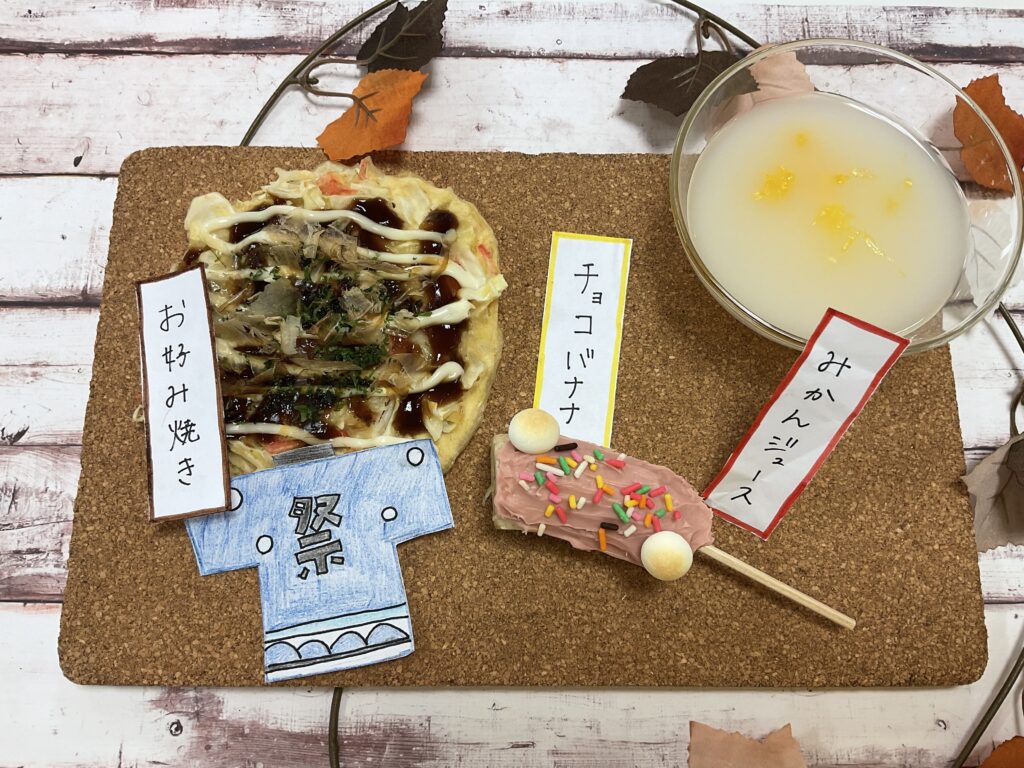 秋祭りメニュー~お好み焼き、チョコバナナ、みかんジュース~