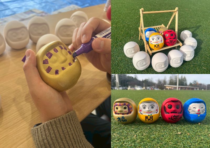 赤をはじめ、青・黄・金・白などのだるまにオリジナルの顔や模様を描いて、世界に一つだけのだるまを作ろう!