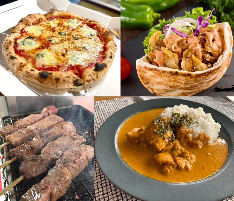 会場には、美味しいグルメやスイーツを心ゆくまで堪能できるグルメブース・キッチンカーも多数登場!開成山BBQガーデンのテントをご利用可能。購入品をすぐに味わうことができます。