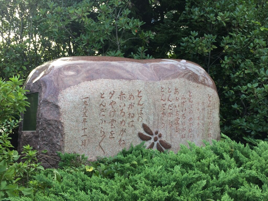誰もが一度は口ずさんだことがある童謡「とんぼのめがね」。この歌の歌詩は、実は広野町で生まれたものです。昭和23年、当時の広野村で内科医をしていた額賀誠志さんが、村でとんぼと遊んでいる子どもたちに触発されて作詞しました。その後、NHKのラジオ放送をきっかけに歌は全国に広がり、代表的な童謡の一つとして歌い継がれています。町内の築地ヶ丘公園には平成7年建立の歌碑があります。