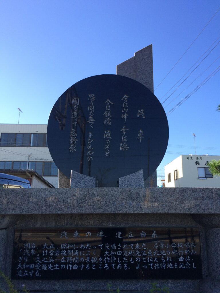 また、「今は山中(やまなか) 今は浜 今は鉄橋渡るぞと」の歌い出しで知られる童謡「汽車」も広野町にゆかりがあると言われ、歌詞には「広野原(ひろのはら)」という言葉も盛り込まれています。こちらも、昭和57年には、JR広野駅のそばに歌碑が建立されました。