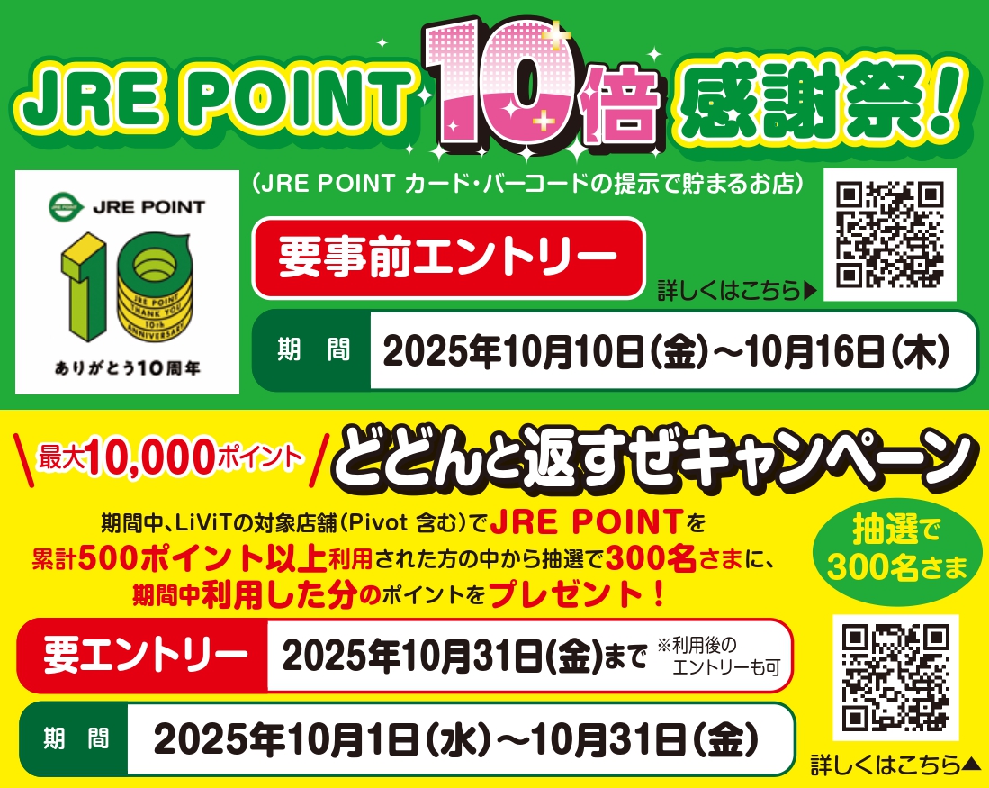 JRE POINT10周年LiViT企画「最大10,000ポイントどどんと返すぜキャンペーン」