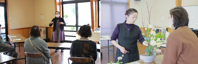 「茶道宗徧流(そうへんりゅう)芳樹会」と「船引華道連合会」が所作をレクチャーします。