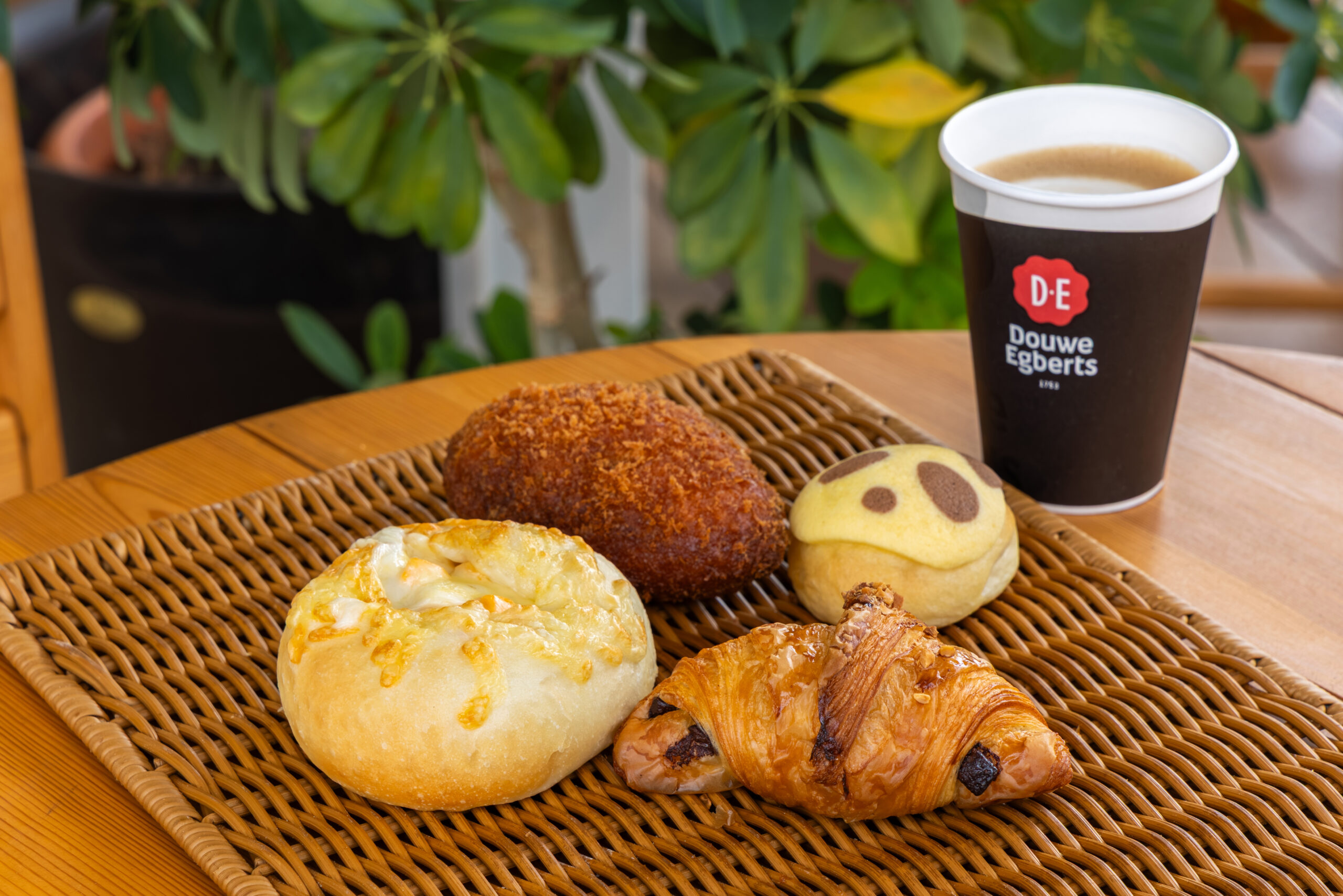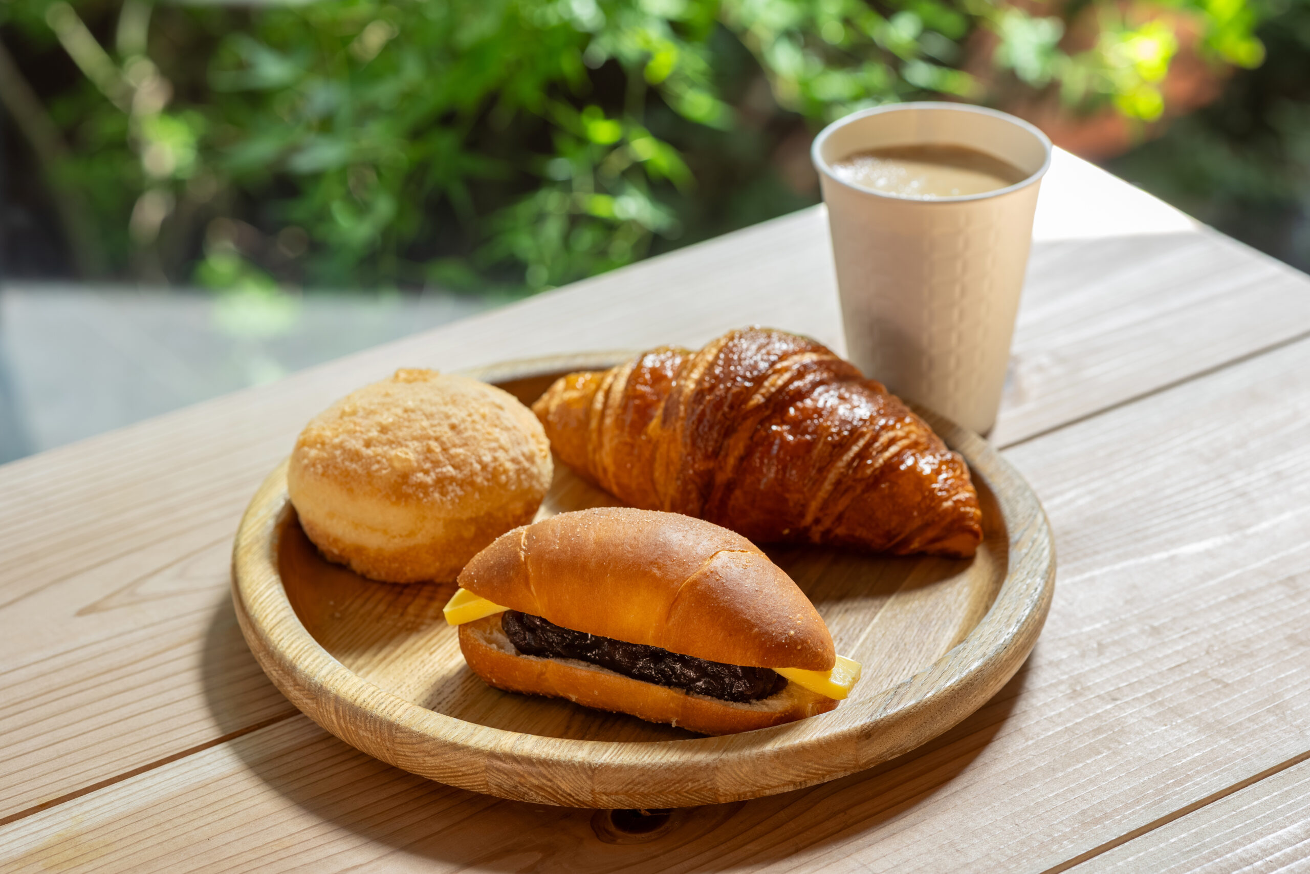 左/岳のドーナツ160円、中/悪魔のアンバターサンド388円、右/クロワッサン324円、ドリップコーヒー450円(パンと一緒に購入で50円OFF)