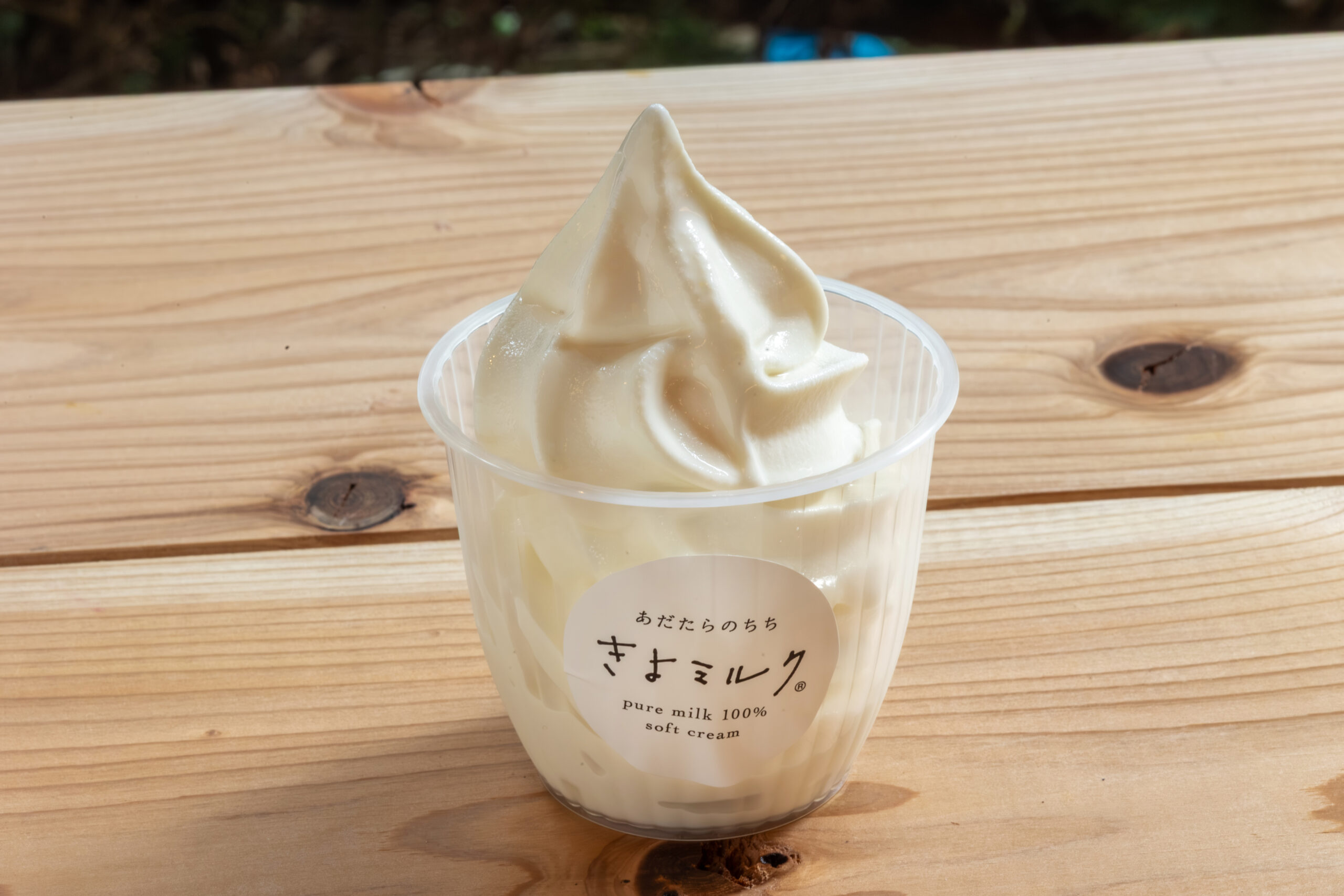 あだたらの生乳100%で仕上げた無添加ソフトクリーム(440円)。お風呂上がりに◎!