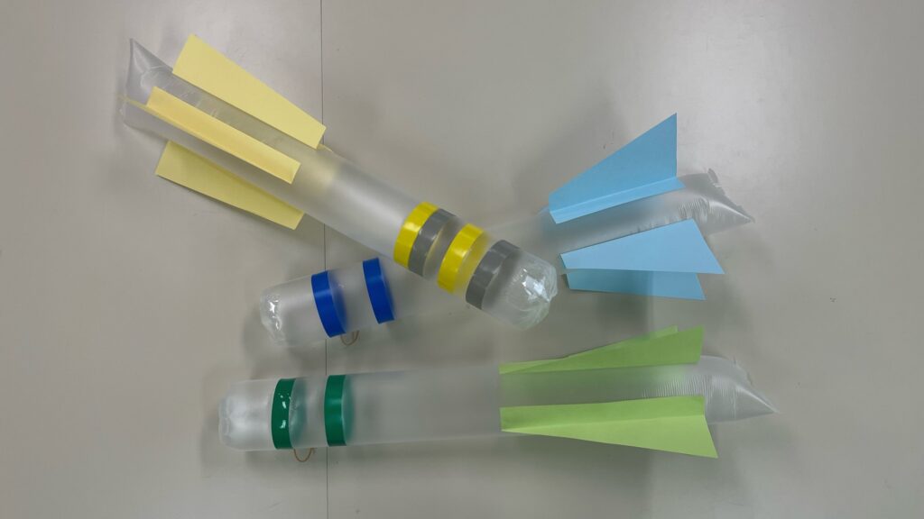 身近な“傘袋”を使ってロケットづくりに挑戦!少しでも長く飛ばすためにはどうすれば良いか形や重さのバランスを工夫してみよう。
