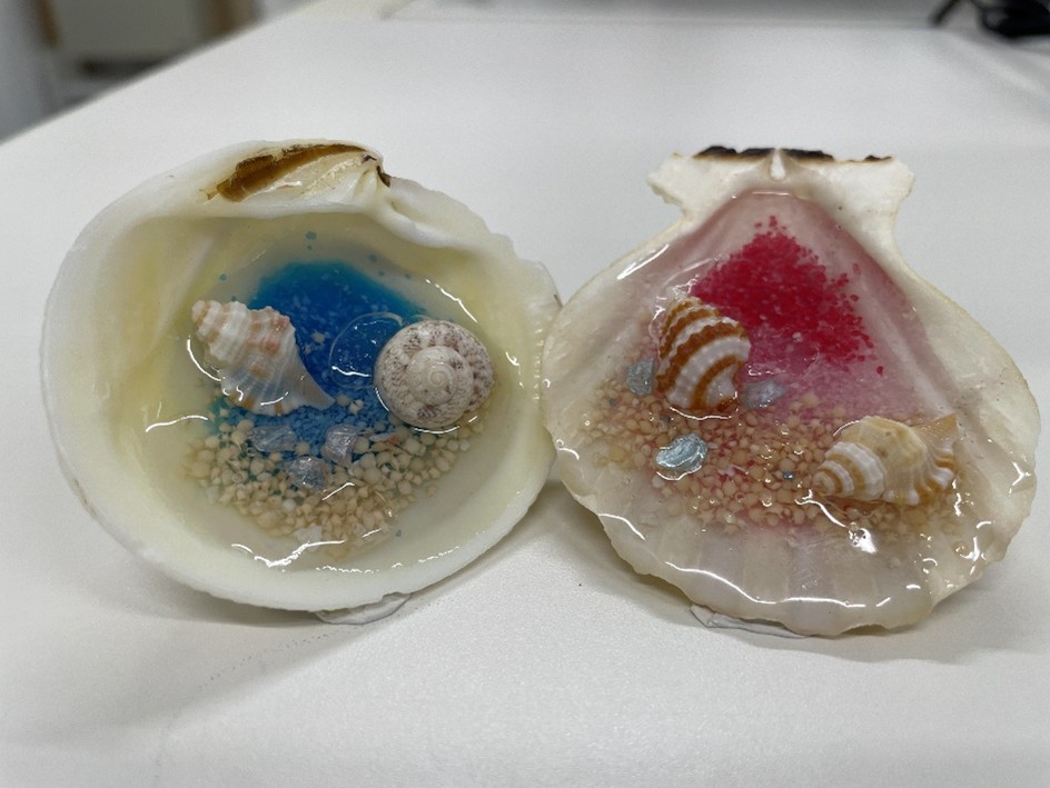 福島県産の色鮮やかなかすみ草をレジンに閉じ込めて、世界に一つだけのストラップを制作。サイエンス屋台村の想い出をカタチに残せるのが◎。