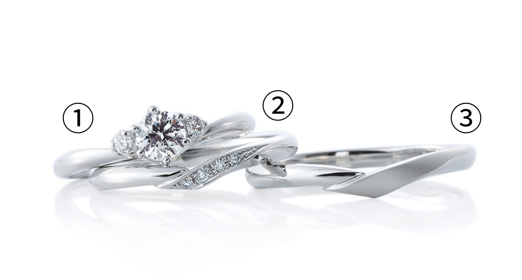 大切な人と手をつないだシーンをイメージしたリング。細身のV字リングは指をすっきりと見せてくれます。女性用はサイドのダイヤモンドがさり気ない華やかさを出してくれます。メンズリングは、ヘアライン仕上げでスタイリッシュなデザインです。