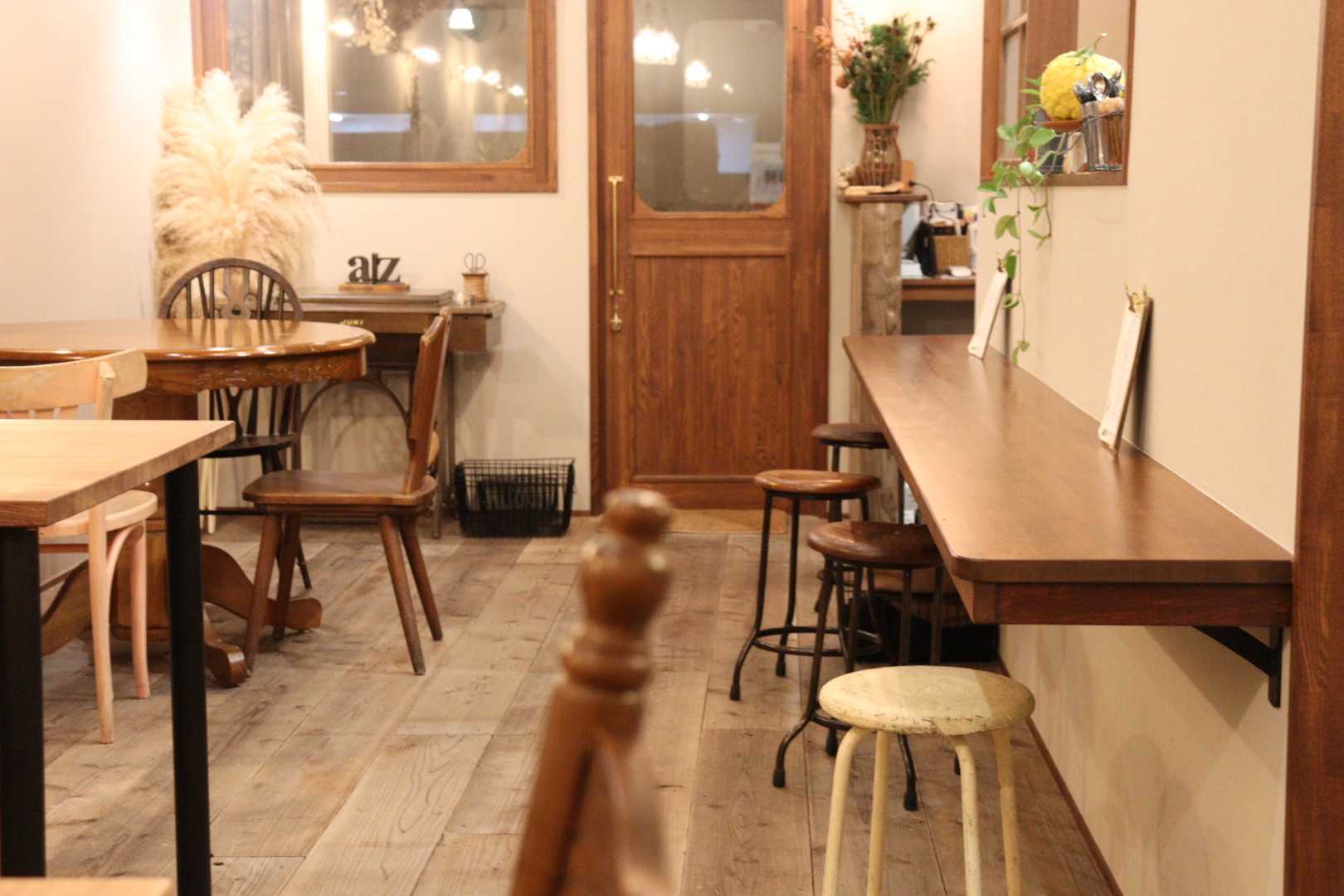 形や色の違うテーブルや椅子が並びつつ、統一感があっておしゃれな雰囲気。カウンター席もあるので1人でも入りやすい。具材たっぷりのランチで元気をチャージ、仕事や家事終わりにカフェタイムでまったり等、どんなタイミングでも癒やされそうな空間でした。