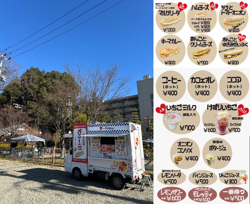 ◆メニュー/海老マヨ、コーンスープ、クラムチャウダー、ふりふりポテト、ホットチョコバナナ、揚げたこ焼き、唐揚げ、玉こんにゃく、雑煮、焼きそば、ポトフ、ホットココア、ホットコーヒー、いちごカップパフェ、さつまいもキャラメルパフェ、紅白カヌレ、ココアぜんざい、抹茶ミルクぜんざい、抹茶ラテ、ビール、ハイボール、レモンサワー