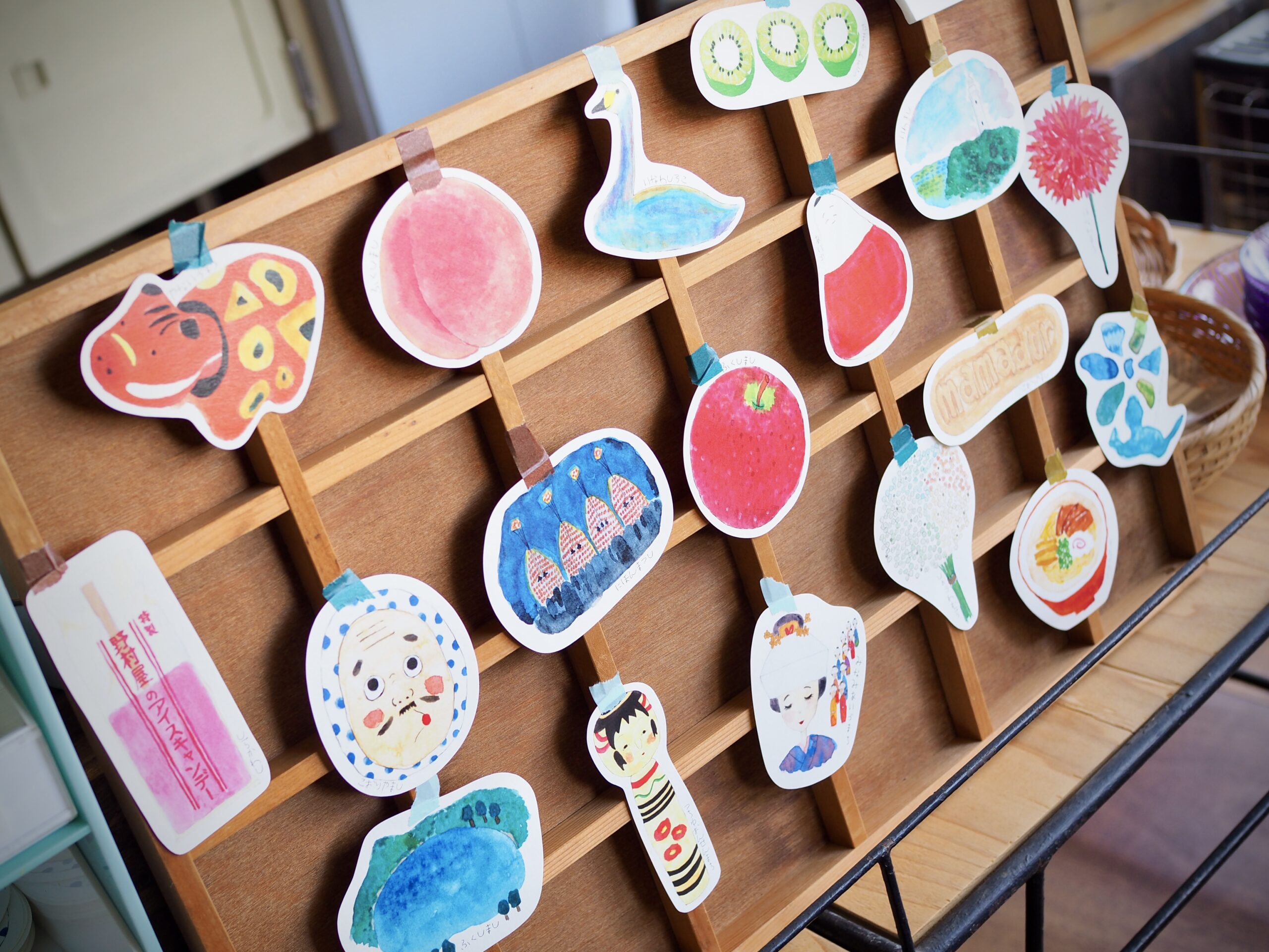 また、作家「をしり」として制作した『ふくしまといえばカード』や『いかにんじんトート』など、地元愛あふれる雑貨も販売されています。