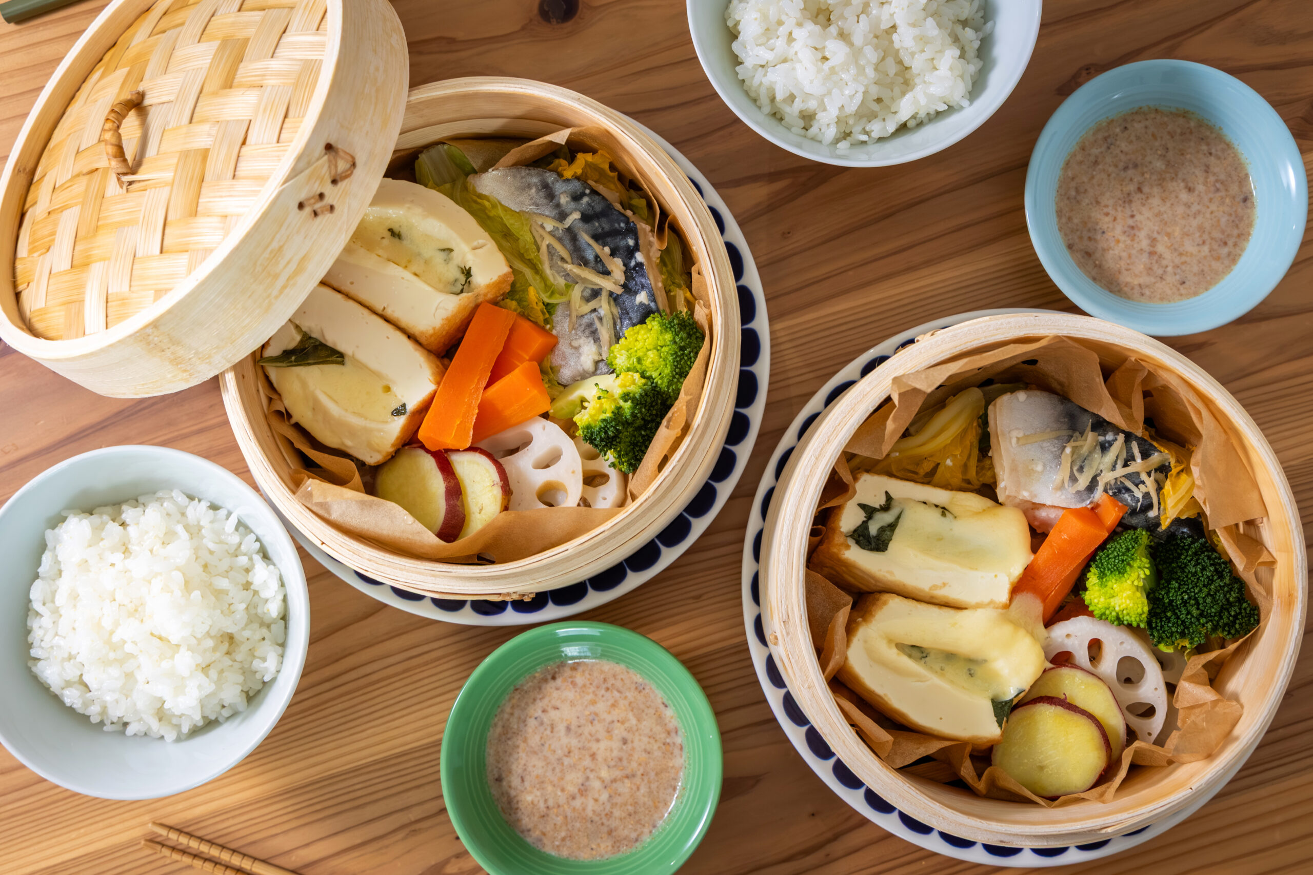 せいろメニューというと肉を入れがちですが、なんと魚もふっくら仕上がって美味しいんです。栄養管理士が考えた栄養バランス満点のさばの定食レシピをご紹介。