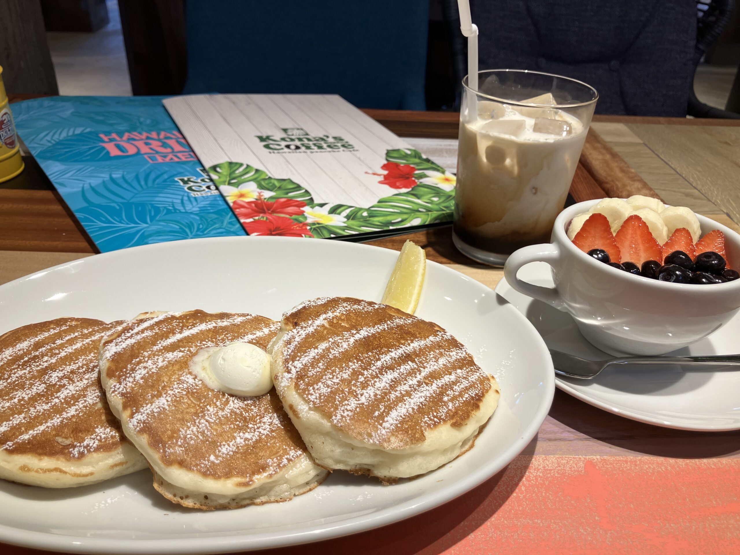 2025年にオープンした「Kona’s Coffee」は、パンケーキやアサイーボウルなどの食事はもちろん、南国ムード満点な雰囲気を味わえるのも魅力のひとつ♪朝カフェからランチ、カフェタイムまで幅広く利用できます。
