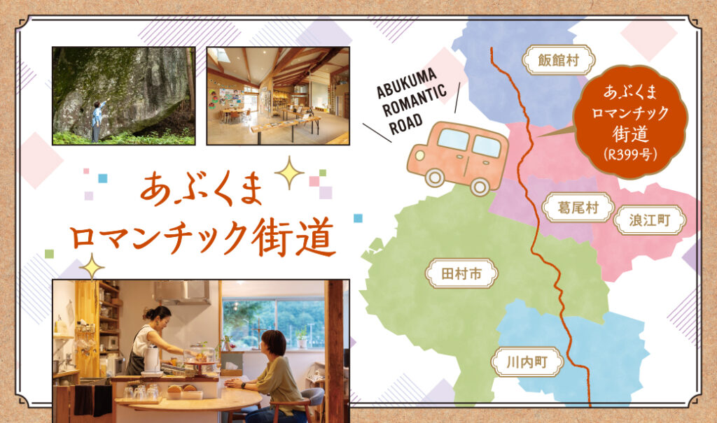 2003年、田村市・川内村・浪江町・葛尾村・飯舘村の5市町村が協議会を立ち上げたことをきっかけに誕生した「あぶくまロマンチック街道」。その名は、中世の街並みや美しい古城が並ぶドイツ南部の観光街道「ロマンチック街道」に由来しているのだとか。手つかずの自然やのどかな田園風景が広がるあぶロマ沿いの景色には、どこか懐かしさと優しさがあり、名前通りの趣があります。また、郡山・福島・いわき・白河の主要都市から車で約1時間というアクセスの良さも魅力!寄り道や立ち寄りスポットも豊富で、地域の新たな観光資源として注目を集めています。