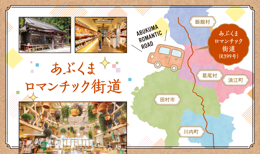 2003年、田村市・川内村・浪江町・葛尾村・飯舘村の5市町村が協議会を立ち上げたことをきっかけに誕生した「あぶくまロマンチック街道」。その名は、中世の街並みや美しい古城が並ぶドイツ南部の観光街道「ロマンチック街道」に由来しているのだとか。手つかずの自然やのどかな田園風景が広がるあぶロマ沿いの景色には、どこか懐かしさと優しさがあり、名前通りの趣があります。また、郡山・福島・いわき・白河の主要都市から車で約1時間というアクセスの良さも魅力!寄り道や立ち寄りスポットも豊富で、地域の新たな観光資源として注目を集めています。