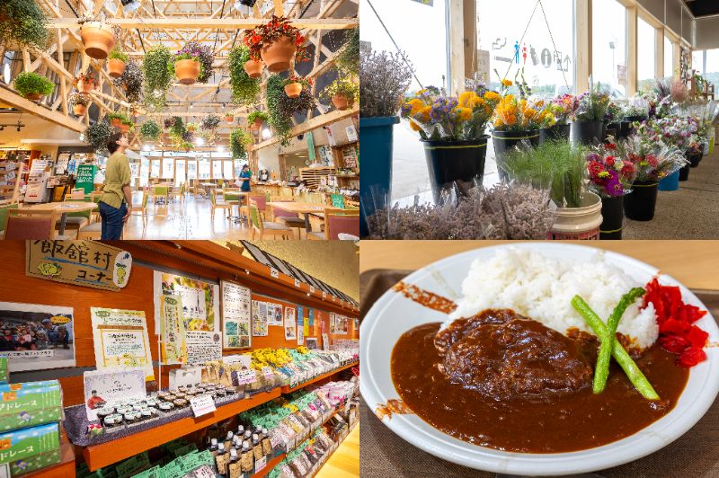 飯舘村の玄関口として親しまれている道の駅『までい館』。館内に入ると、天井から吊るされた色とりどりの花々が出迎えてくれ、思わず写真に収めたくなる空間が広がります。直売コーナーには、飯舘の特産である花をはじめ、新鮮な野菜や村ならではの加工品がずらり♪また、食堂で味わえる個性豊かなメニューにも注目です。黒毛和牛を使ったハンバーグが贅沢にのったカレーは、専門店顔負けの本格派!長崎ちゃんぽんや伊勢うどんなど、県外グルメを楽しめるのもユニークな魅力です♪屋外にはドッグランや子ども向けの屋内遊び場もあり、家族連れやペットとの旅にもぴったり。買い物も食事もレジャーも楽しめる飯舘旅の拠点として、まず立ち寄りたいスポットです。