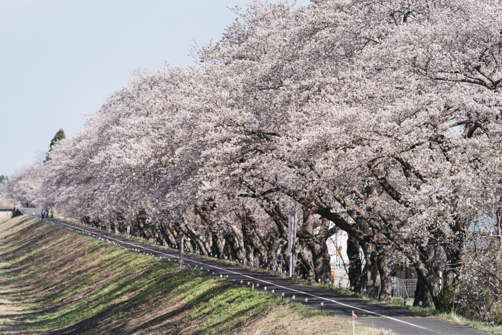 請戸川沿いに続く「請戸川リバーライン」は、浪江町を代表する桜スポット。川沿いの土手約1.5㎞におよそ120本のソメイヨシノが植えられ、散策しながらお花見を楽しめます。