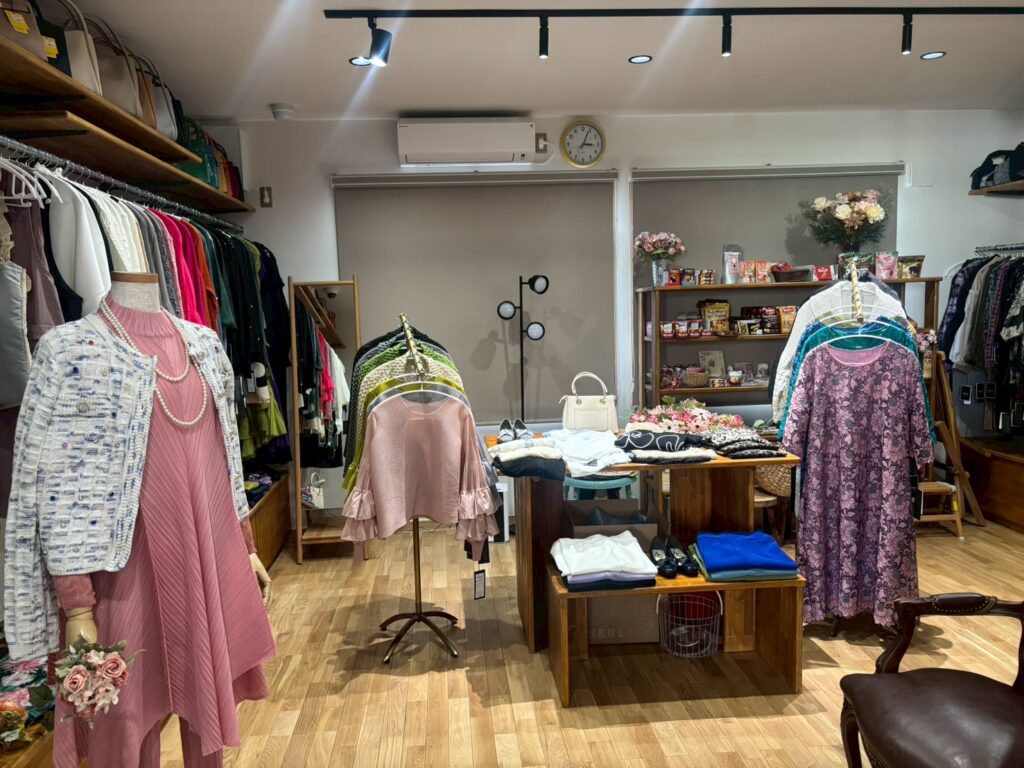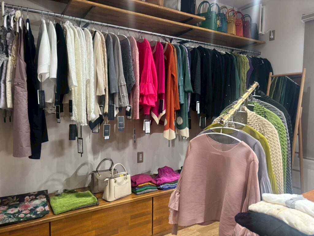 売場に並ぶ商品はすべて、理恵さんと娘の璃子さんが自ら仕入れてきたもの。大量に同じ商品を揃えるのではなく、「見た瞬間に素敵だと思えるか」「自分が本当に着たいか」という感覚を大切に、一点一点を厳選しています。シンプルで日常に取り入れやすいデザインから、さりげなく個性を感じるアイテムまでバランスよく揃い、他の人と被りにくいという点も魅力。さらに約2週間ごとに新商品が入荷するため、訪れるたびに新しい発見があるのも特徴です。売場を巡る時間そのものが楽しみになる、そんなセレクトショップならではの価値がここにあります。