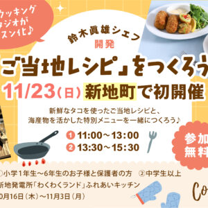 2025.11.23 PR 新地町【②の回のみ、追加募集!】人気の料理教室「ABCクッキングスタジオ」がレッスン化♪新地町で初開催!鈴木眞雄シェフ開発の『ご当地レシピ』をつくろう!