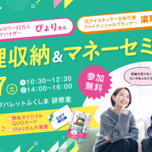 ※満席のため募集を締め切りました。<2026年2/7(土)郡山市ビッグパレットふくしま>片づけとお金の不安を同時に解決!「整理収納&マネーセミナー」