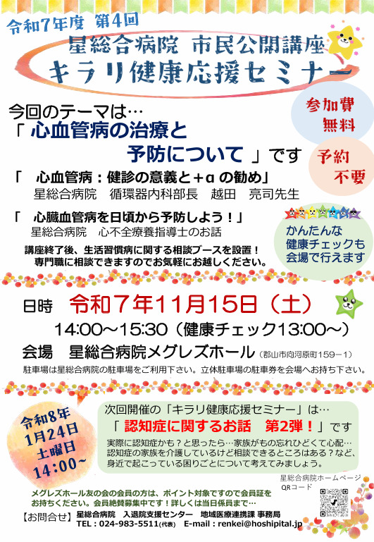 第4回キラリ健康応援セミナー「心血管病の治療と予防について」